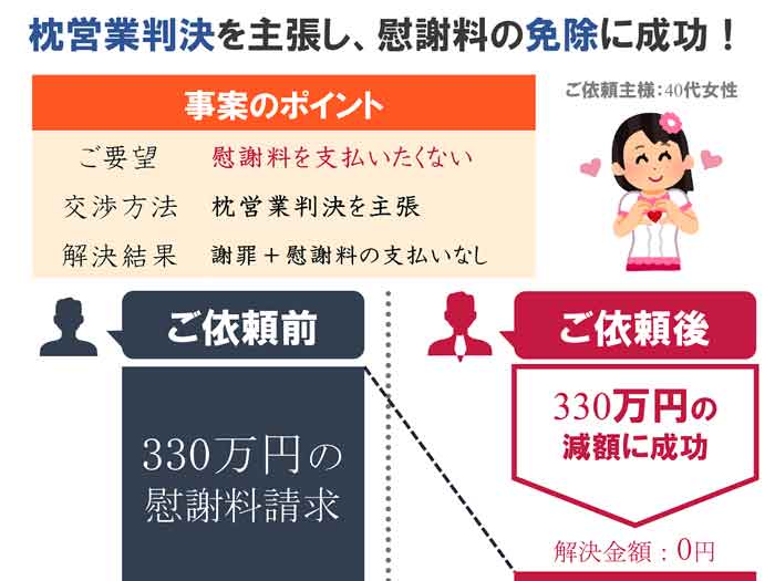- 風俗嬢が慰謝料請求された事案:枕営業判決で慰謝料の免除に成功